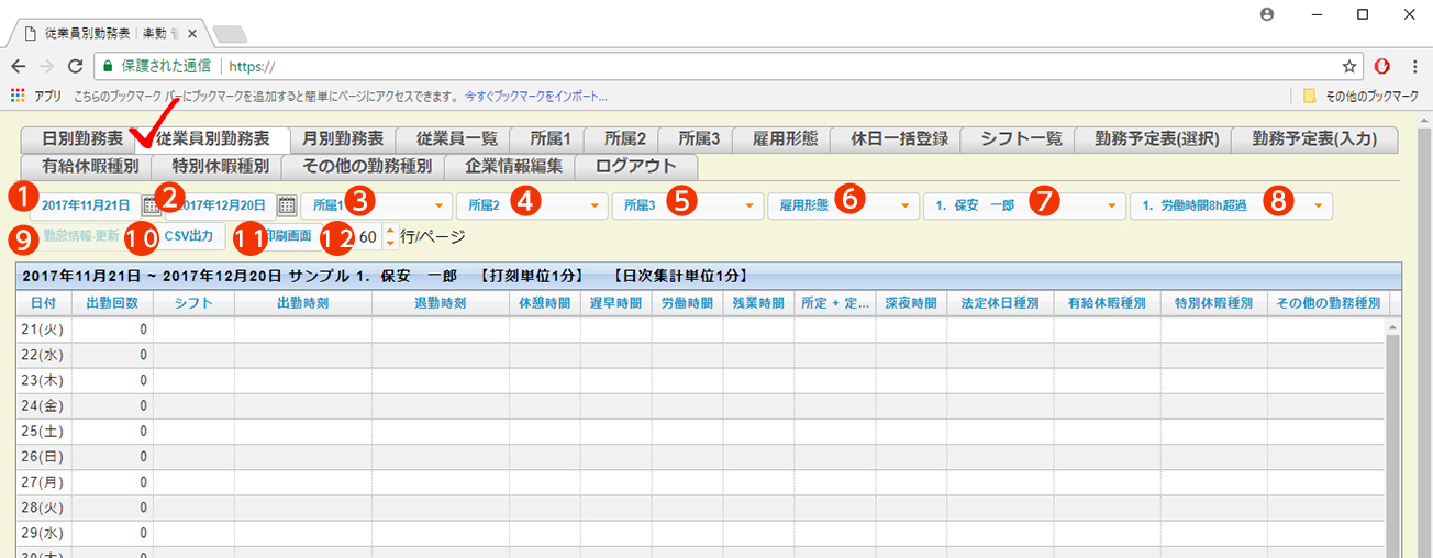 から雇用形態を選択し、従業員名を絞り込むこともできます。